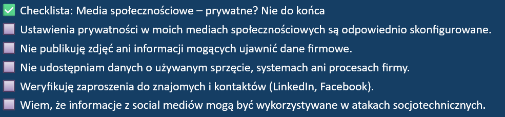 Podsumowując: media społecznościowe to nie jest przestrzeń w pełni prywatna. Dbanie o to, co i jak publikujemy, to jeden z filarów osobistego i firmowego cyberbezpieczeństwie.